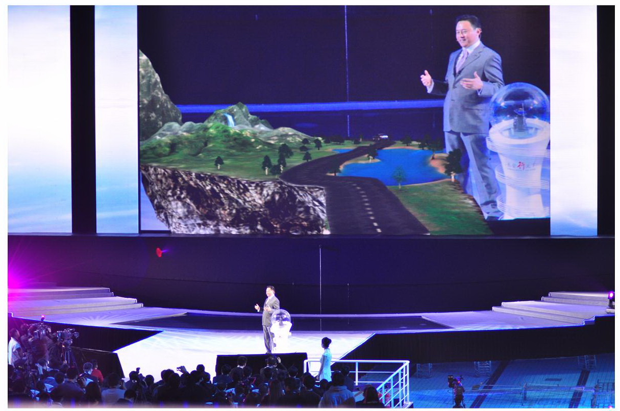 2、增强现实技术理论与应用研究:主要针对室内的增强现实应用研究,尤其是产品发布会、展览会为主的基于展台的增强现实应用。对实时互动实体投影、逆向红外外形捕捉、实时图像特效处理、投影仪矩阵变形矫正、卡尔曼滤波动作捕捉过滤等关键技术开展研究。利用软件工程的行为规范,已经开发出基于增强现实的互动展示平台,模块化设计,针对具体应用,积木化组装,研究成果已经应用于百度2010世界大会、安踏奥运领奖服发布仪式、长安汽车新品发布展、空客A380中国首航仪式、西门子博声产品发布会、中联重科AR展会应用、三星爱婴煮洗衣机AR展示等10多个横向项目,取得了较好的经济效益和社会效益。