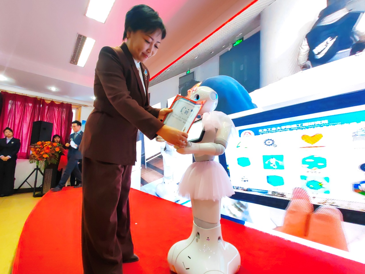 活动当天,永利集团yl6809官网党委副书记陈卫为“吉祥”老师送出寄语,期待她能够积极工作,为孩子们提供情感交互与陪伴,让孩子们的世界将变得更加丰富多彩。小飞象训练发展中心理事长赵星郑重地为“吉祥”老师颁发了聘书,标志着这位智慧机器人将正式肩负起孤独症儿童科技康复的重任。活动中,这位智慧与温情并存的机器人“吉祥”老师,不仅与“星宝”们共同演绎了《小猪吃的饱饱》、《元日》、《阳光彩虹小白马》等节目,生动展示了科技与教育的深度融合,更体现了实验室在科技创新与人文关怀方面的双重追求。活动受到《北京日报》、《北京青年报》、石景山电视台、石景山融媒体等媒体报导。