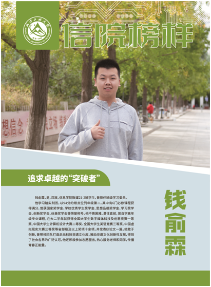 钱俞霖,男,汉族,永利集团yl6809官网数媒21-2班学生,曾担任班级学习委员。
