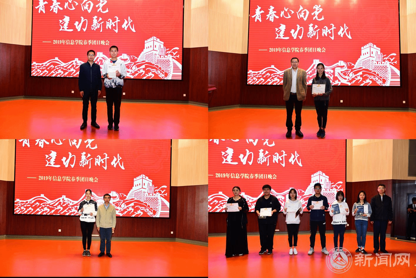 晚会在《我们是五月的花海》歌声中拉开帷幕。参与展示的团支部分别从筹备情况、开展形式、收获与感悟等方面介绍了主题团日开展相关情况,并通过原创诗朗诵《七十年,祖国从这里走过》、视频展示《我和我的祖国》、红歌串烧等形式,进行主题展示。晚会现场穿插五四知识问答、青团在线视频展播等专题学习。经过激烈角逐,大数据18团支部、计18-7团支部,计实验18团支部分获一二三等奖。微电17团支部等团支部获优秀奖。