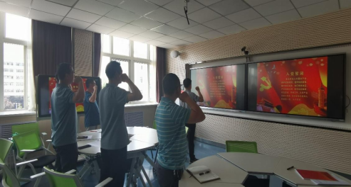 首先,全体党员面向党旗,重温了入党誓词,再一次表明了听党话、知党恩、跟党走的坚定决心。