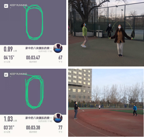 Five之“运动打卡”——疫情期间,学生们的身体健康是第一要务。为鼓励“彩虹班”的学生加强体育锻炼,学院为学生们提供了跳绳、羽毛球和足球等运动器材。班主任多次组织学生在小操场进行户外运动,同学们每天也积极将运动的照片或跑步轨迹上传到班级群中。