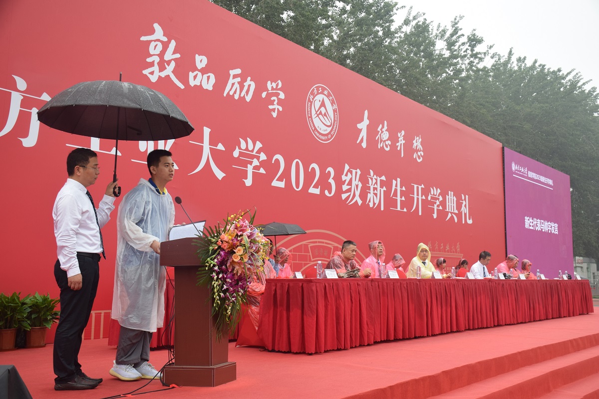 电信20-1班杨畅星同学代表在校学生分享了在校的学习奋斗故事,寄语新同学们顽强拼搏,接续奋斗,收获属于自己的大学青春。计算机实验23班马帅宇同学代表2023级新同学发言,表示今后要不忘初心,读书报国,定义最美好的人生,遇见最美好的自己。