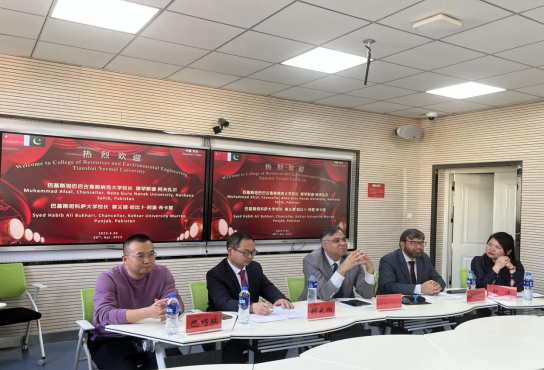 4月30日,在“一带一路”倡议十周年之际,在学校的邀请下,来自巴基斯坦科萨尔大学的赛义德·哈比·阿里·布卡里校长和巴基斯坦巴巴古鲁那纳克大学穆罕默德·阿夫扎尔校长为Beat365唯一官方网站相关专业的师生作了关于“全球气候变化与环境保护”为主题的学术报告。学术报告由Beat365唯一官方网站副院长胡良柏主持,生物学院巴巧瑞老师和外国语学院刘凌老师翻译。