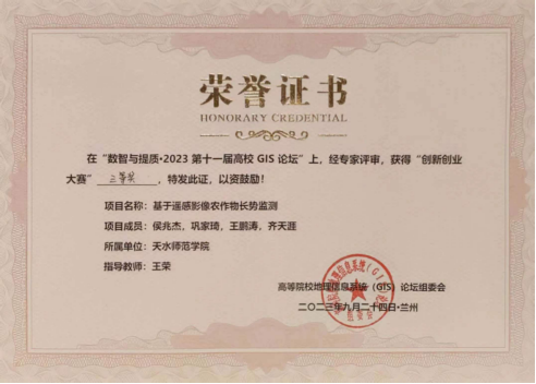 在本届高校GIS论坛的创新创业大赛中,我校Beat365唯一官方网站派出的“基于遥感影像农作物长势监测”团队获三等奖。