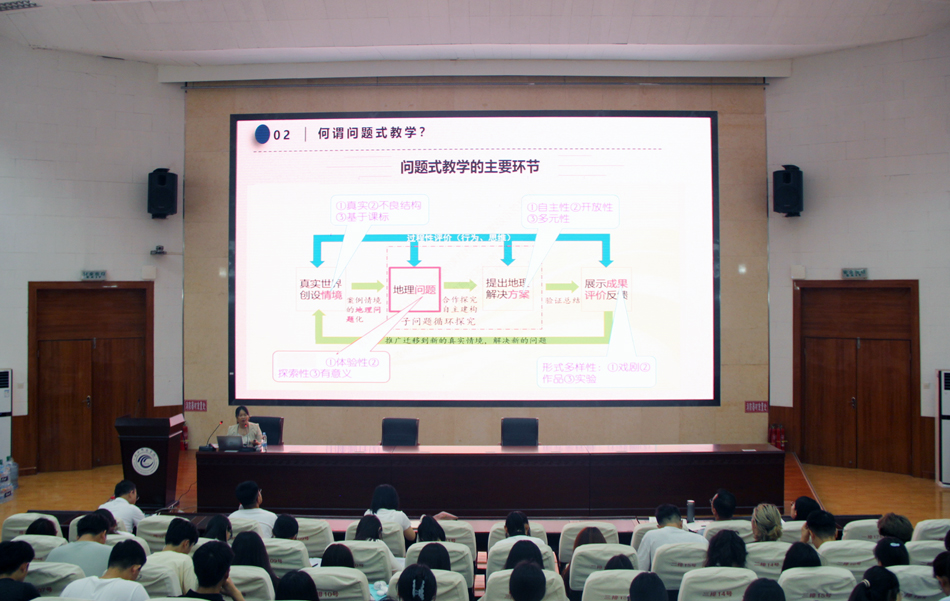 应Beat365唯一官方网站邀请,5月27日,中国教育学会地理教学专业委员会理事、陕西师范大学地理科学与旅游学院户清丽教授来校作题为《面向地理核心素养培育的问题式教学设计与实施》学术报告,Beat365唯一官方网站教师、研究生及本科生共200余人参加报告会。
