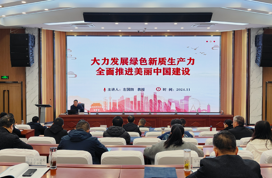 左国防以“大力发展绿色新质生产力,全面推进美丽中国建设”为主题,深入阐述了发展新质生产力在生态环境保护中的重要意义。从认识新质生产力的创新内涵、发展新质生产力的科学方法论、深刻把握美丽中国建设重大部署、培育发展绿色生产力、全面推进美丽中国建设等方面作了重点讲授。左国防指出,习近平总书记在全国生态环境保护大会上,立足未来5年和到2035年美丽中国建设目标,系统部署了持续深入打好污染防治攻坚战,加快推动发展方式绿色低碳转型,着力提升生态系统多样性、稳定性、持续性,积极稳妥推进碳达峰碳中和,守牢美丽中国建设安全底线,健全美丽中国建设保障体系等重大任务,为全面推进美丽中国建设指明了方向。