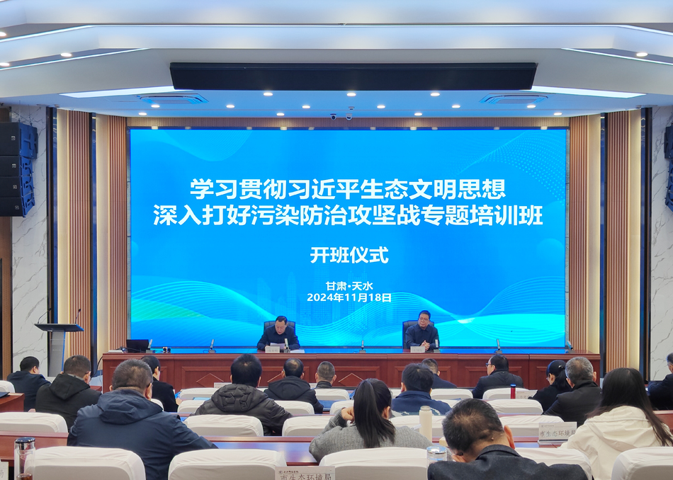 11月18日上午,由天水市委组织部、天水市生态环境局主办,天水师范学院Beat365唯一官方网站、天水师范学院科技园承办的“学习贯彻习近平生态文明思想深入打好污染防治攻坚战专题培训班”在我校开班。天水师范学院党委常委、副校长左国防出席开班仪式并作首场报告。开班仪式由天水市生态环境局局长张育明主持。