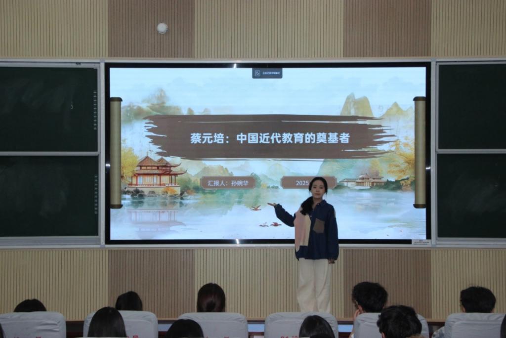 分享过程中,同学们讲述了不同时代教育家的育人事迹,并对典型的教育思想进行了阐述,引导同学们从教育家精神中汲取力量,努力提升自己的专业知识和教学能力,做新时代教育家精神的弘扬者和继承者。大家纷纷表示,要以此次分享会为契机,将教育家精神转化为实际行动,不断加强专业知识,增强教育情怀,提升教师专业技能。