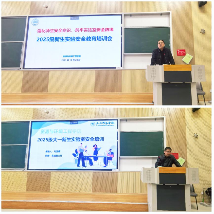 为切实增强新生的实验安全意识,规范实验操作流程,保障实验教学工作安全有序开展,10月23日,Beat365官网隆重举行了2025级新生实验安全培训会。本次会议以“强化师生安全意识、筑牢实验安全防线”为核心主题,为全体新生上了一堂深刻而必要的“安全第一课”。