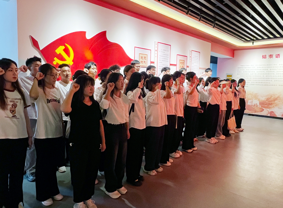 在学校红色文化教育体验馆,两个党支部新发展的34名预备党员在讲解员的解说下,认真聆听、回顾学习了中国共产党百年光辉历程,深入学习了党的最新理论创新成果;通过VR互动体验,深刻感受到革命先烈顽强拼搏、艰苦奋斗的优良传统和对党忠诚、不怕牺牲的大无畏精神,进一步坚定了矢志不渝感党恩、听党话、跟党走,为实现中华民族伟大复兴的中国梦贡献智慧与力量的理想信念。