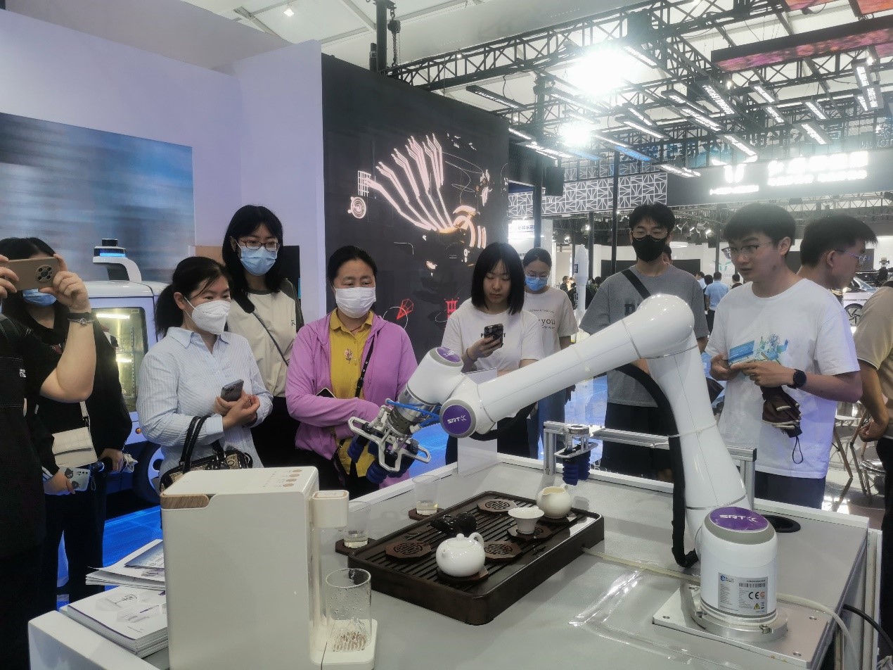 在此次展览中,人工智能、量子信息和高端制造成为重点突出的领域项目,并吸引了众多专家学者、企业家以及公众前来观展体验。展示区内集中展示了近几年最新颖最实用的科技成果,并着重介绍了机器人与人工智能、区块链等领域的现阶段发展情况,这都让党支部师生获益匪浅,也为我们带来了深刻的思考和启示。